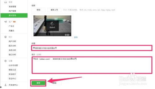4. 发布视频:将视频上传到微信公众号,并添加相关描述。