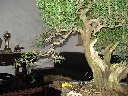 2. 造型:根据个人喜好和侧柏的生长特点,确定树形。常见的树形有直干式、曲干式、斜干式等。